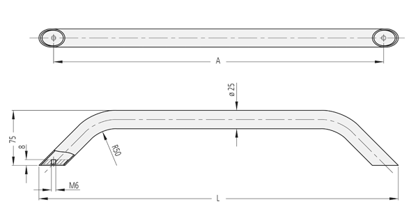 Griff aus Edelstahl Werkstoff 1.4404 mit polierter Oberfläche.