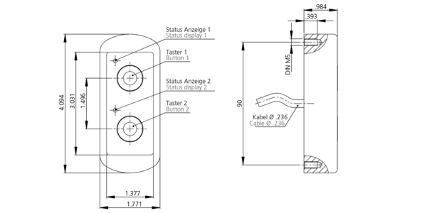 Folientastatur mit 2 beleuchteten Drucktastern (Schließer) und Statusanzeige rot und grün.