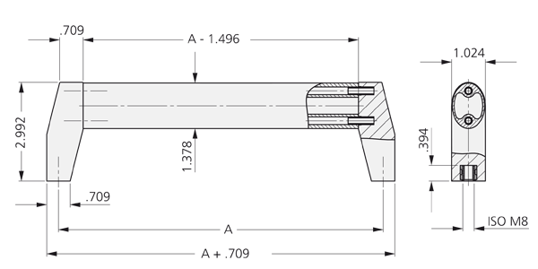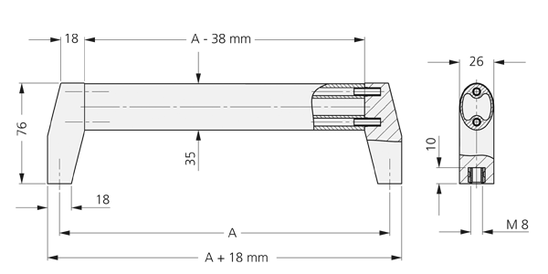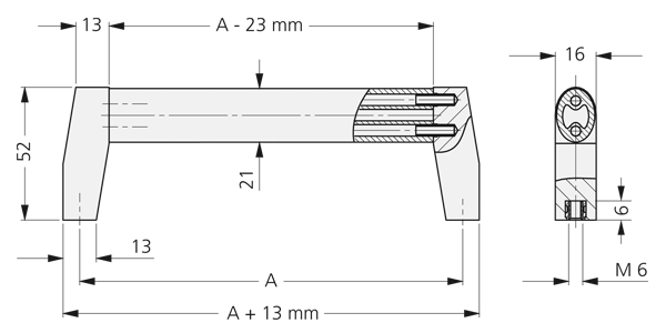 Plastic Handle shank made of polyamide PA6, black with fine structure and threaded bushing made of brass. Handle ledge made of extruded aluminium oval profile AlMgSi 0.5; glass ball blasted and natural coloured or black anodized. Clamping sleeves made of stainless steel.