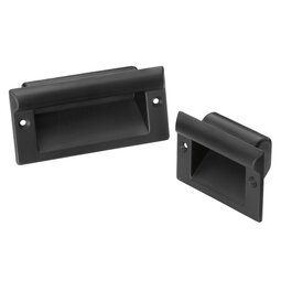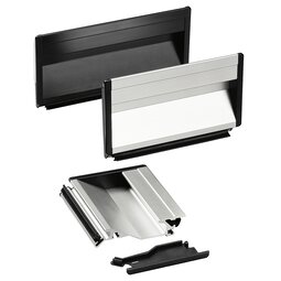Profiled aluminium tray, natural colour anodized. Side end caps of polyamide PA 6, glass ball reinforced, black, half-matt with fine ...