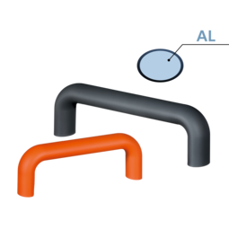 Handle shanks made of polyamide PA6 in black with fine structure. Connecting ledge made of profiled aluminum AlMgSi 0.5; ...
