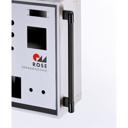 Polyamide PA 6, glass ball reinforced, black, matt with fine structure.
