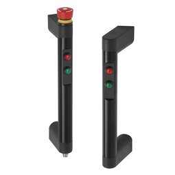 Plastic handle for screwing onto the housing wall, springs back automatically.