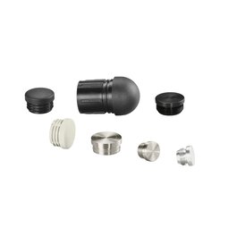 Heavy-duty design, plastic and stainless steel, pushed-in type tube handles for machines, technical installations and doors.