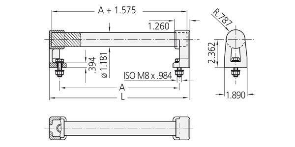 horquilla de poliamida PA6 reforzada con bolas de vidrio, semimate con estructura fina. Empuñadura de POM gris o negro.
