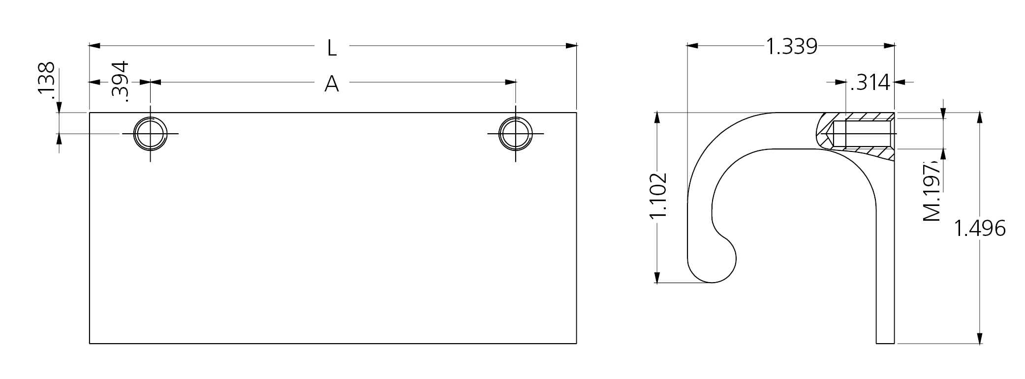 Asa de aluminio perfilado AlMgSi 0,5; granallado y anodizado en color natural o negro.