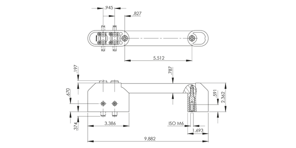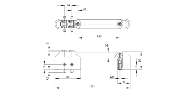 Cuerpo de poliamida PA6 negro mate con estructura fina. Puente de aluminio AlMgSi 0,5 para perfiles, granallado y anodizado en colores naturales.