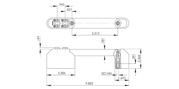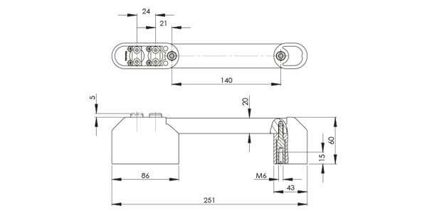 cuerpo de poliamida PA6 reforzado con esfera de vidrio en negro con estructura fina puente de aluminio AlMgSi 0,5 para perfiles, chorreado con bolas de vidrio y anodizado en colores naturales.