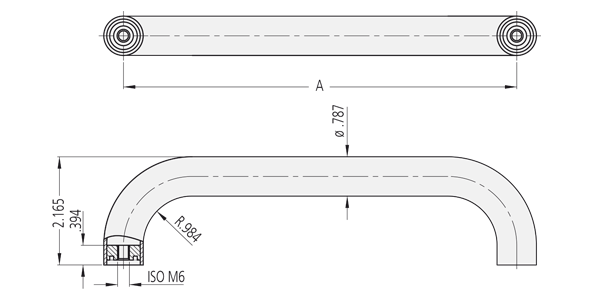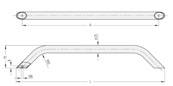 Maniglia in acciaio legato materiale 1.4404 con superficie lucidata.