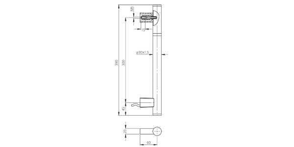 Tubo em alumínio AlMgSi 0,5; rectificado e anodizado preto. Asas e tampas em poliamida PA6 preto com estrutura fina.