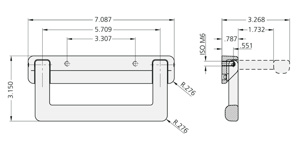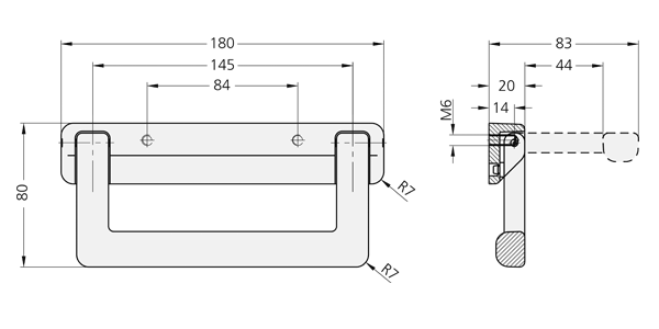 Kendi kendine geri yaylanan alüminyumdan üretilmiş taşıma tutamağı, arka yüzden cıvatayla sabitlenmek için.