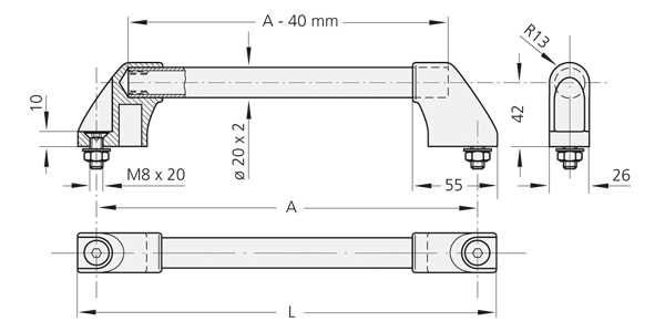 Tutamak kolu, yüksek dayanıklılıkta, cam bilye takviyeli poliamid malzemeden; RAL 9005 benzeri siyah renkte, ince dokulu yarı-mat. Bağlantı boruları alüminyumdan AlMgSi 0,5.