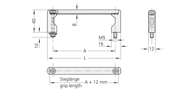 Nikel kaplı silindir başlı imbus vidalar M 5 x 45 DIN 7984 veya DIN 6912 ve kendinden kilitli galvanize somunlar dahildir. Tip UG-05'e ait tutamak kolları, aynı şekilde gümüş-metalik olarak da temin edilir. Fiyatları lütfen sorunuz. Farklı tutamak uzunluklarında temin edilir.