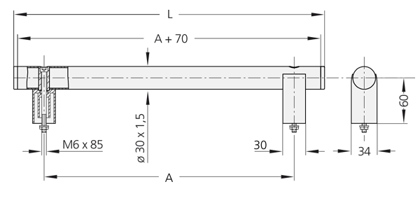 管子 ø30x1.5 mm 铝、铝镁硅合金 0.5, 天然色,经过阳极氧化处理,或者 黑色,粉末冶金涂层,精细结构。 可选择不锈钢 材料号 1.4301 经过精磨加工。