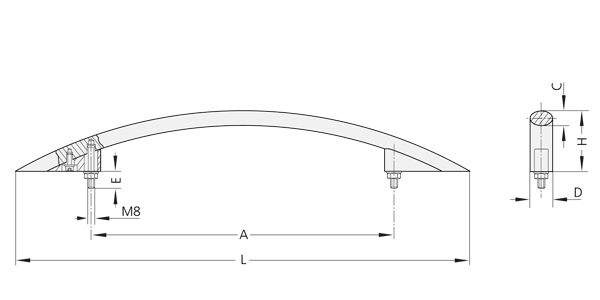 铝、铝镁硅合金 0.5 材质的拉手条,呈玻璃球亮光和半光泽,天然色,经过阳极氧化处理, 或者黑色粉末冶金涂层。聚酰胺 PA6 材质的拉手柄,黑色,精细结构。
