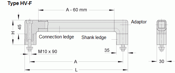 手柄腿高度 2 H = 90 mm