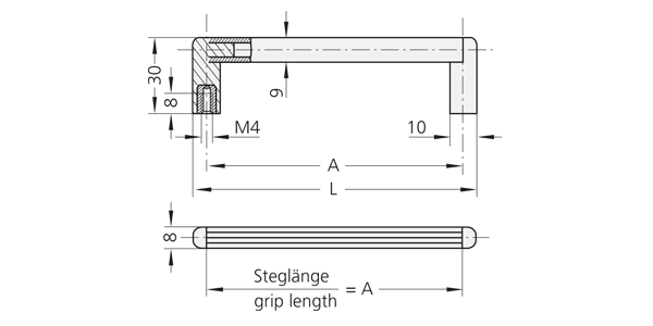 适用于小型仪器,面板和类似的 应用区域。拉手条和手柄 作为配合件插接在一起。