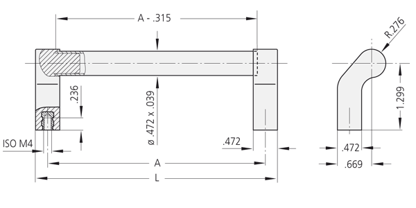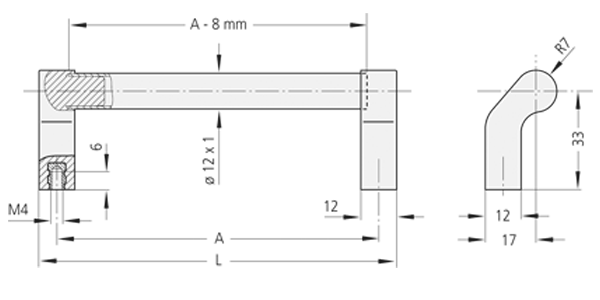 塑料拉手柄,玻璃纤维增强,黑色,半光泽,精细结构, 黄铜螺纹衬套。连接管,ø 12 x 1 mm 铝、铝镁硅合金 0.5 材质,亚光,天然色或黑色,经过阳极氧化处理,或者 不锈钢,材料号 1.4301,经过精磨加工。