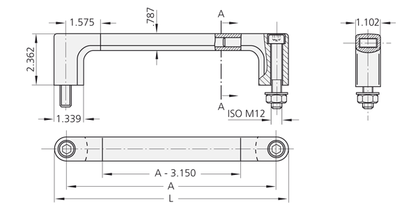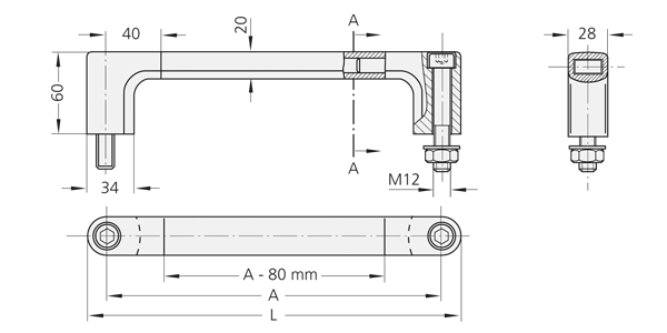 包括黑色镀锌内六角圆柱头螺栓 M12x70 DIN 912,镀锌垫片 DIN 125 和螺母 DIN 934。已安装拉手条和手柄。