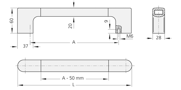 玻璃纤维增强的尼龙拉手柄,黑色,类似 RAL 9005, 半光泽,精细结构。黄铜螺纹衬套。拉手条, 由铝、铝镁硅合金 0.5 挤压法制成,去光泽,天然色,经过阳极氧化处理。 可选的拉手柄和拉手条,黑色漆,类似 RAL 9005。