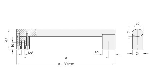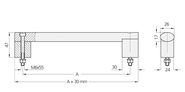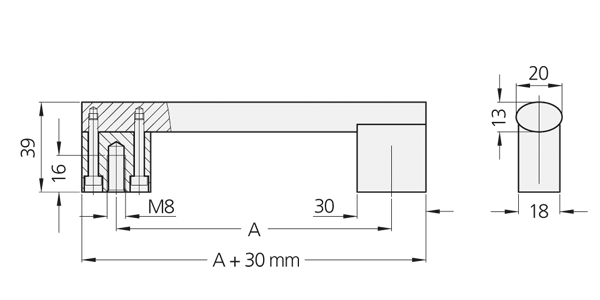 把手支腿由挤压铝 AlMgSi 0.5 制成;已进行玻璃珠喷砂,封釉,原色或者黑色电解抛光。连接型材由不锈钢 1.4307 制成;已打磨且亚光拉丝。