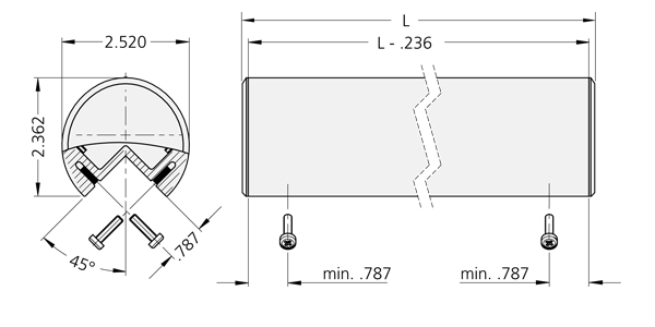 通过 两个错开 90°连续的拉手型材槽可以 相应地分配型材槽中的紧固螺栓。